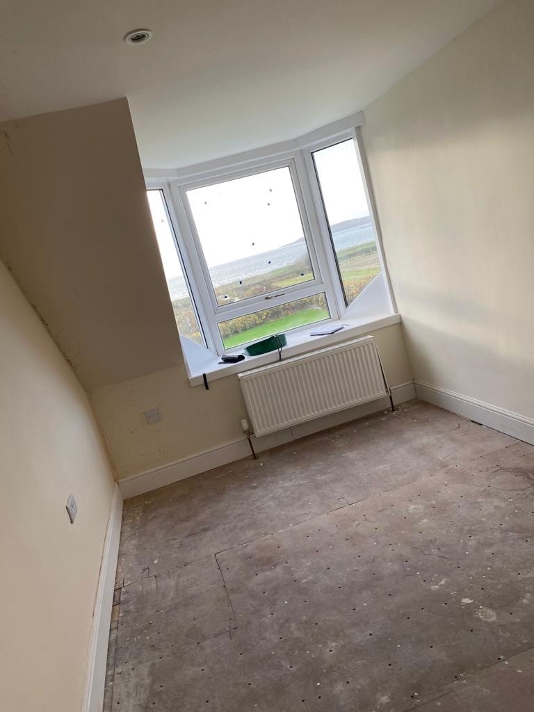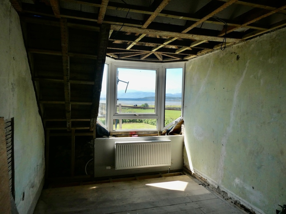 This really was a tricky one, as the room was a difficult shape with odd corners. Also, the chamfered ceiling dictated where I could and couldn’t put furniture. I really wanted the bed opposite the window as the view is gorgeous, but that would have resulted in quite a few bumped heads due to the sloping ceiling. Fortunately, you can still take full advantage of the view from the bed’s current position 🌊 ~ what a treat it is to be able to lie in bed and gaze out at the view and listen to the birds on the shore. I never close the blinds, so I can look out at the night sky - apart from a few sparrows and a passing seagull, noone can see in.