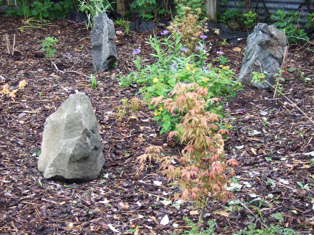 I planted a Weeping Cherry Tree and a Bramley Apple Tree. Both did very well, but sadly in 2022 the Cherry Tree succumbed to a root disease and died. Such a shame as it really was beautiful, a mass of swaying pink blossoms. I couldn’t plant anything from the same genus in the that spot as the root disease was still in the soil and would have infected the new plant, so I opted for a Weeping Birch and so far, it has been doing just fine. We have since added two more apple trees, a Katy and a Discovery, both are doing well - the apples are ripe in early autumn and guests are welcome to give them a try. Other additions are a Weeping Cotoneaster, Witchhazel, Dragon's Claw Willow and a Rowan Tree. The Rowan is quite an important tree in Scottish folklore and is often found growing near standing stones, it is said to be a symbol of protection against witches and the like. Last year I noticed a 'fairy' ornament had appeared at the foot of the Rowan tree, I have no idea who put it there?