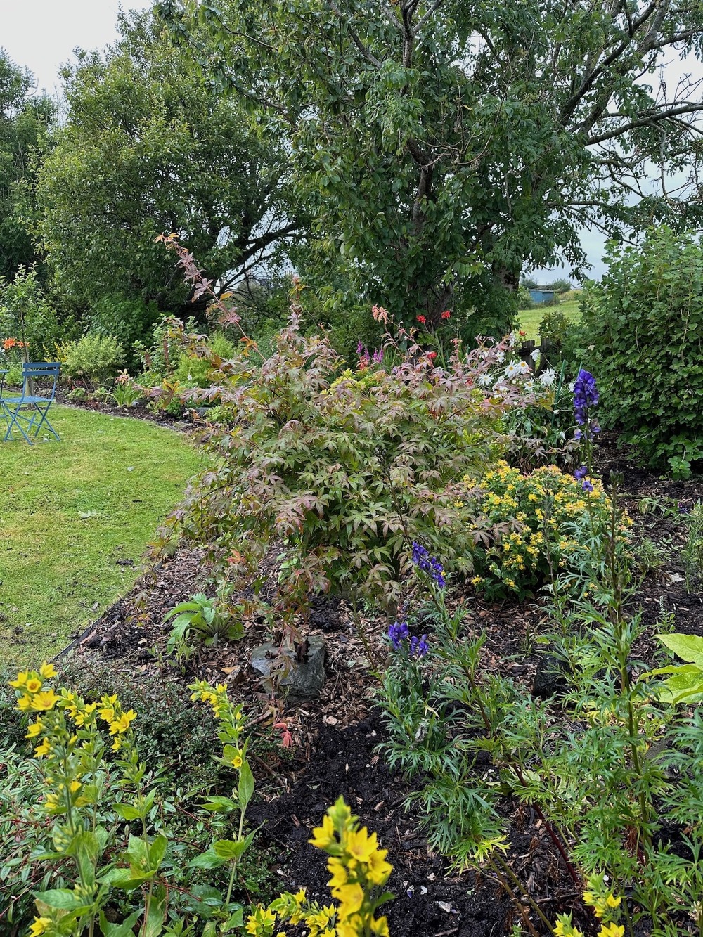 I also had to address the unhappy Astilbes. Despite being in the garden for over a year, they had barely grown. They’ve now been moved to new spots that I hope will suit them better. On a brighter note, I’m absolutely delighted with a new addition to the bed—a lilac Thalictrum 'Hewitt’s Double.' Its soft lilac colour looks stunning against the dark foliage of the red Cotinus (Purple Smokebush), creating a striking contrast that I’m really pleased with. Further down the garden, I have a pale yellow Thalictrum Glaucum, though it’s not doing as well. I might need to move it next year if it doesn’t improve, but I’ll give it a little more time to settle.